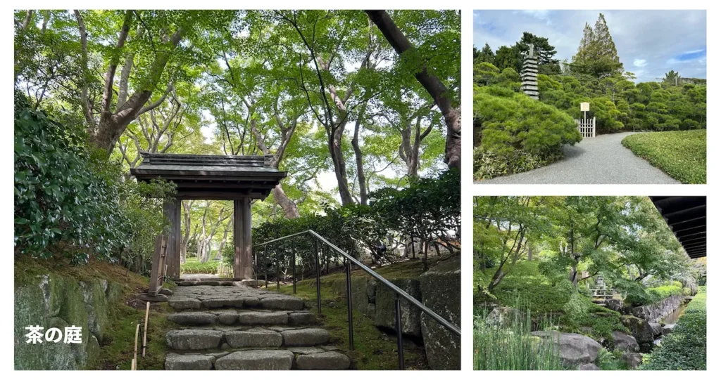 展覧会を楽しんだ後は、外に出て茶の庭や竹林を見学。